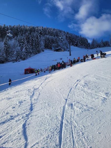 Auf den leider ziemlich vereisten und hügeligen Pisten haben die zuvor nach Leistungsstand eingeteilten Gruppen dann das Skigebiet erkundet und sich eingefahren. Nach der Mittagspause wurden dann weitere Übungen absolviert, um Technik und Fahrkönnen zu verbessern. Besonders beliebt war dabei in der Gruppe von Herrn Heinrich der "Superman", welcher die Blickrichtung des Oberkörpers zum Tal hin verbessern sollte.