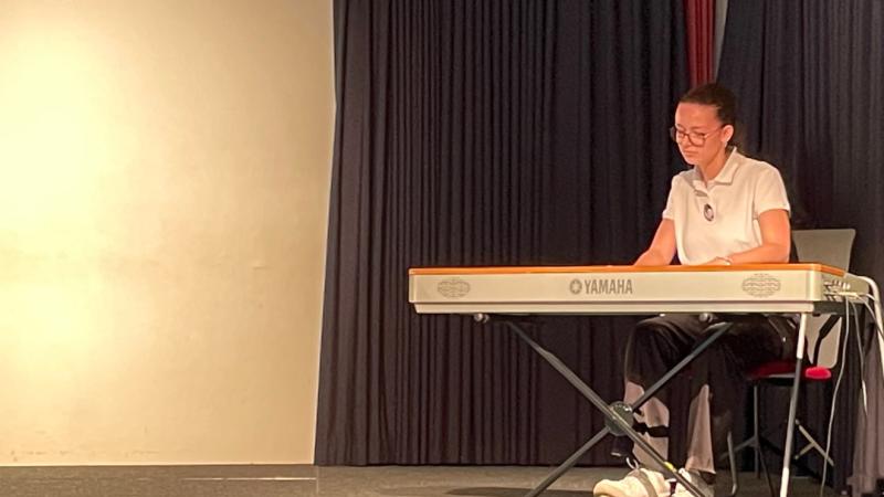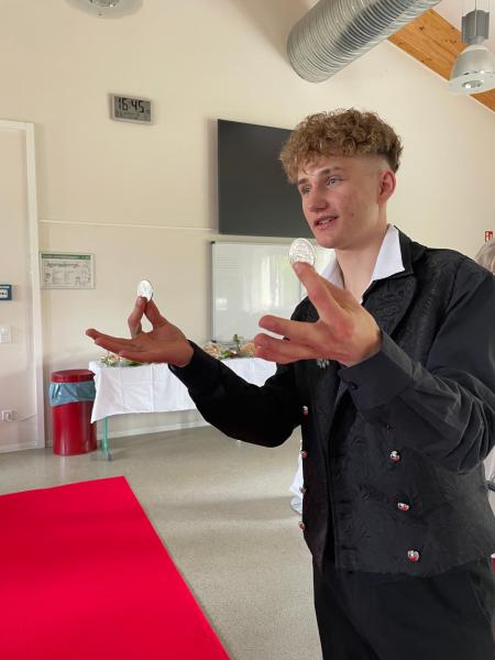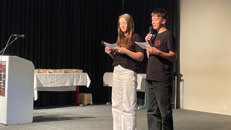 Sympathisch moderiert wurde der Festakt von Luise Wittke und Louis Oker (beide Jahrgangsstufe 7), umrahmt durch musikalische Beiträge von Hanna Pieper (Klasse 10c) am Klavier („Blossoms“ von Felix Janos) sowie des Schul-Chors („How far I'll go“ aus Disney's Vaiana). Annika Ptock (Jahrgangsstufe 11) sang stark Abbas „Thank you for the music“ aus Ausklang des Festakts.