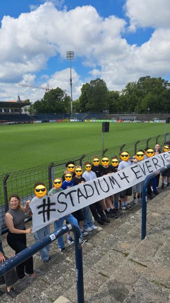 Das Projekt „Politik im Fußball- Sportstätten” beschäftigte sich mit der Frage, wie Politik ins Stadion gebracht wird. Hierbei lag der Fokus auf Diskriminierung im Fußball, in der Schule und in der Gesellschaft. Daraufhin besuchten sie das Fußballstadion in Babelsberg und nahmen dort an einem Workshop zur Diskriminierung teil.