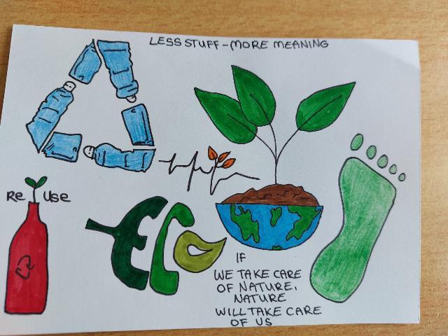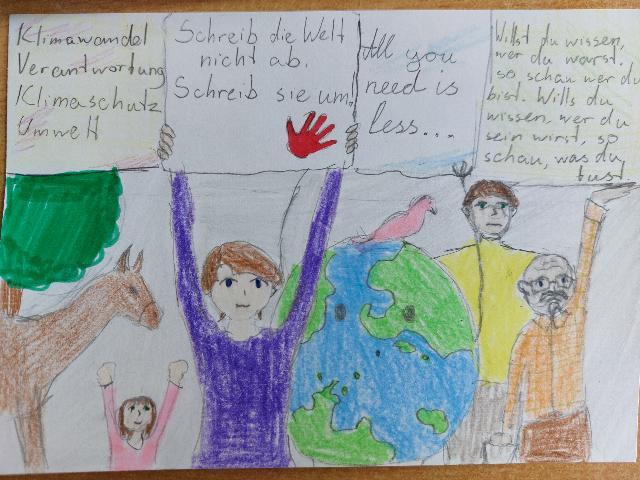 Der Tag an der THB war ein Teil einer ganzen Unterrichtseinheit mit Unterstützung von Andreas Lindauer, der zuständig für Projektarbeit im Religionsunterricht ist. Im Unterricht haben wir beispielsweise ein Planspiel durchgeführt, wodurch die Schülerinnen und Schüler nachvollziehen konnten, wie ein Unternehmen funktioniert, wenn es verantwortlich und nachhaltig arbeitet. In der letzten Stunde sind Postkarten mit nachhaltigen Gedanken entstanden.