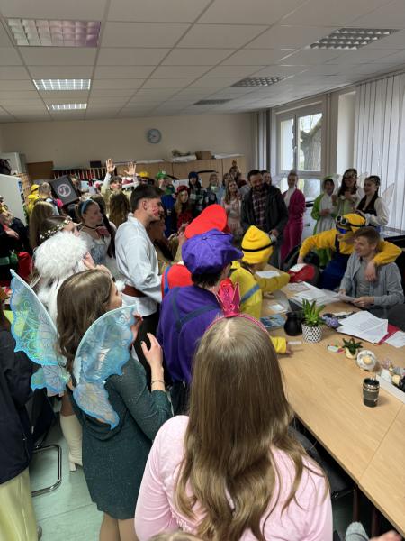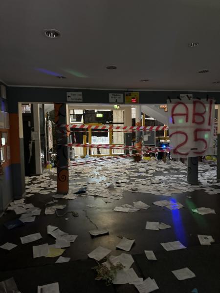 Mit viel Liebe - und der Unterstützung unseres Hausmeisters Herrn Möbes - haben sie ab 05:30 Uhr das Schulhaus dekoriert. In der Frühstückspause gab es dann ein buntes Programm mit Quiz („Wer hat bei der letzten Matheklausur die Rückseite vergessen?“), Stuhltanz (Gewinnerin: Jette Becker) und natürlich der obligatorischen Schlacht an den Wasserpistolen.