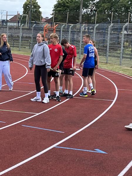 Erste Neuerung war die Erwärmung. Nach einer Stadionrunde zum Einlaufen wurde jede Klasse individuell bei der Erwärmung von einer Seminarkursschülerin angeleitet.
