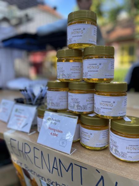 Auch kulinarisch wurde für alle etwas geboten. Vor allem der Grill war ein beliebtes Ziel. Die Schülerfirma präsentierte den frisch geschleuderten Honig der aktuellen Saison.