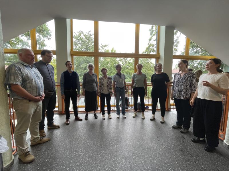 Nach der aufgezwungenen Aufräumaktion bildete der Lehrerchor den Schlusspunkt - statt auf der Bühne im Freien nun im Flur des ersten Obergeschosses. Nach einem tollen Programm mit vielen Gänsehaut-Momenten verabschiedeten sich alle und freuen sich nun auf die morgige Zeugnisausgabe.