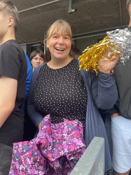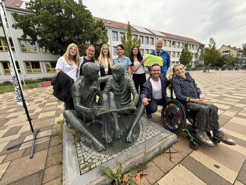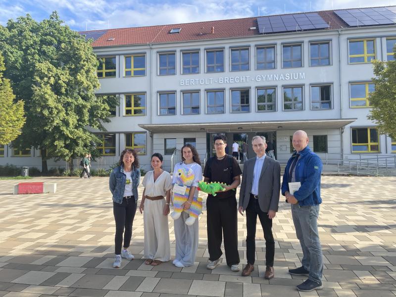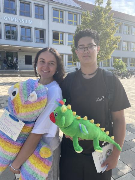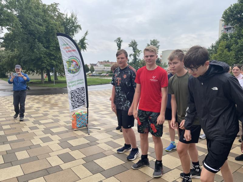 Eine Projektgruppe war im Kinderhospiz in Radewege. Es war nicht der erste Kontakt mit dieser erst seit letztem November bestehenden Einrichtung. So erklärt sich die sehr berührende Aktion der Klasse 10b: Nachdem sie über ein Jahr für ihre Abschlussfeier gesammelt haben, haben sie das überschüssige Geld gemeinsam mit einem äußerst süßen Regenbogen-Alpaka dem Kinderhospiz gespendet.