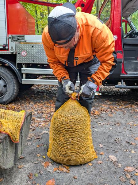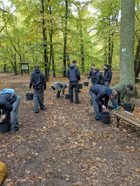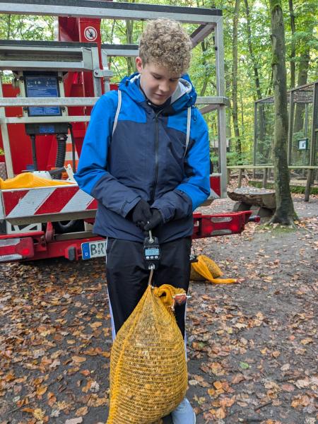 Bei bestem Herbstwetter sammelten sie im nahegelegenen Wald Eicheln für den Förster. Das Ergebnis kann sich sehen lassen: 311,5 Kilogramm Eicheln kamen zusammen!