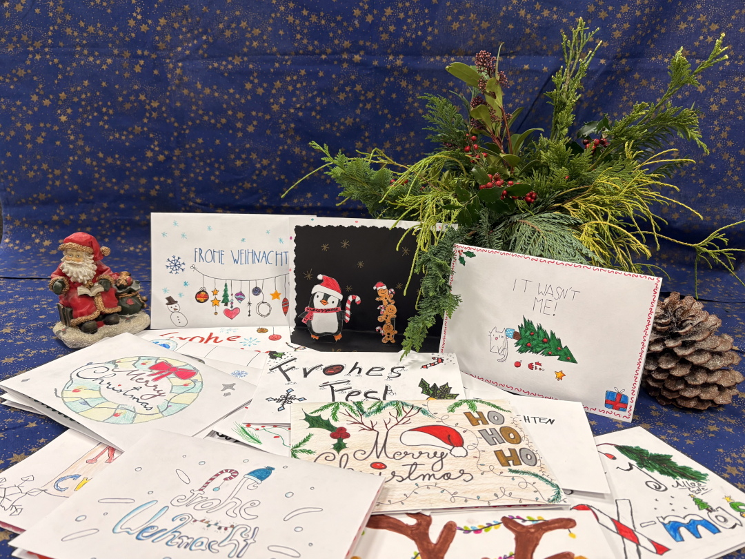 Musikalisch bot die Veranstaltung eine große Bandbreite: Herr Kuritz eröffnete an der Orgel unter anderem mit „Stille Nacht“. Ein gemeinsamer Chor aller Jahrgänge sang „Feliz Navidad“ und schuf damit früh eine festliche Atmosphäre. Der Jahrgang 12 präsentierte „Christmas in Old Man’s Head“ sowie „Mary’s Boy Child“. Die elften Klassen begeisterten mit rhythmisch begleitetem „Last Christmas“ und „Merry Christmas“.