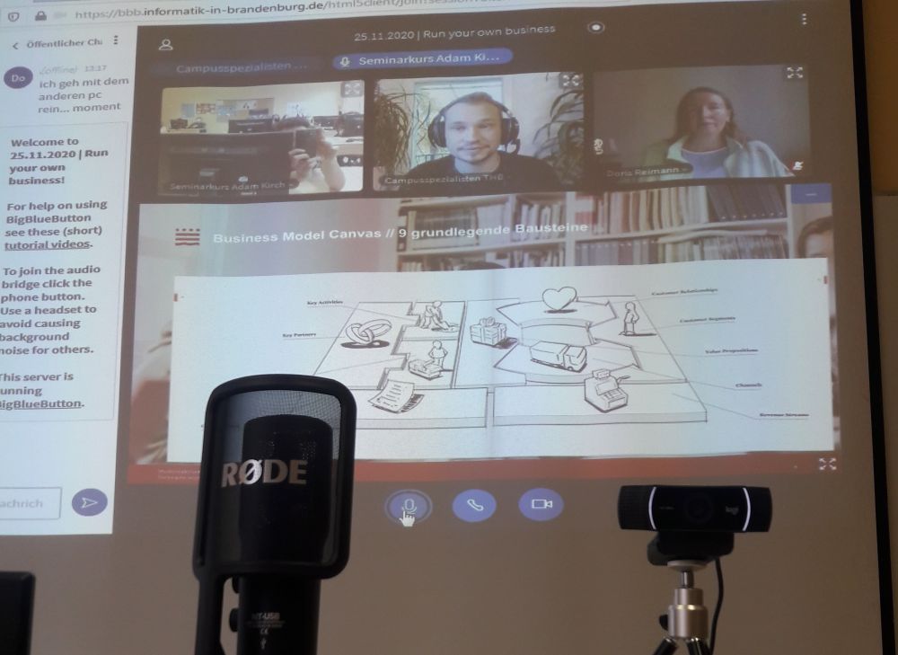 Welche Aspekte bei der Planung und Umsetzung einer Geschäftsidee zu beachten sind, lernten die SchülerInnen des berufsorientierten Seminarkurses in der Klassenstufe 11 am 25.11.2020 kennen. Unterstützung bekamen wir dabei von der Technischen Hochschule Brandenburg, die diesen Workshop als Online-Videokonferenz durchführte. Auf Grundlage eines konkreten alltäglichen Problems wurde ein "Business Model Canvas" erstellt, welches dann per Webcam präsentiert wurde.