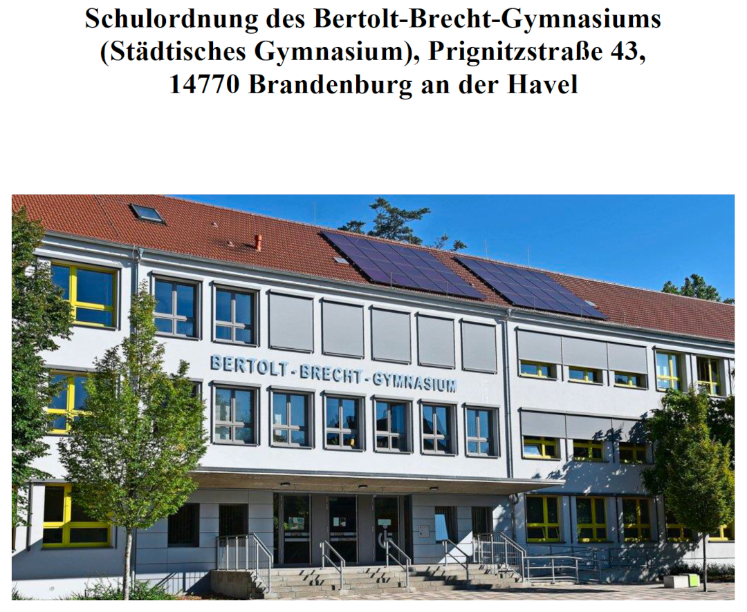 Die Schulordnung wurde gemeinsam durch die Lehrer- und Schülergemeinschaft erarbeitet. Sie ist derzeit gültig in der Fassung vom November 2024. Wesentliches Ziel ist es, beste Bedingungen für ein erfolgreiches Lernen zu schaffen.